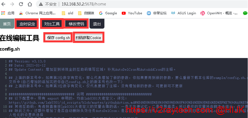 访问http://<ip>:5678并编辑保存好即可,其他啥也不用干,容器也不用重启。其中config.sh改完立即生效,crontab.list会在下一次任何定时薅羊毛任务启动时更新。