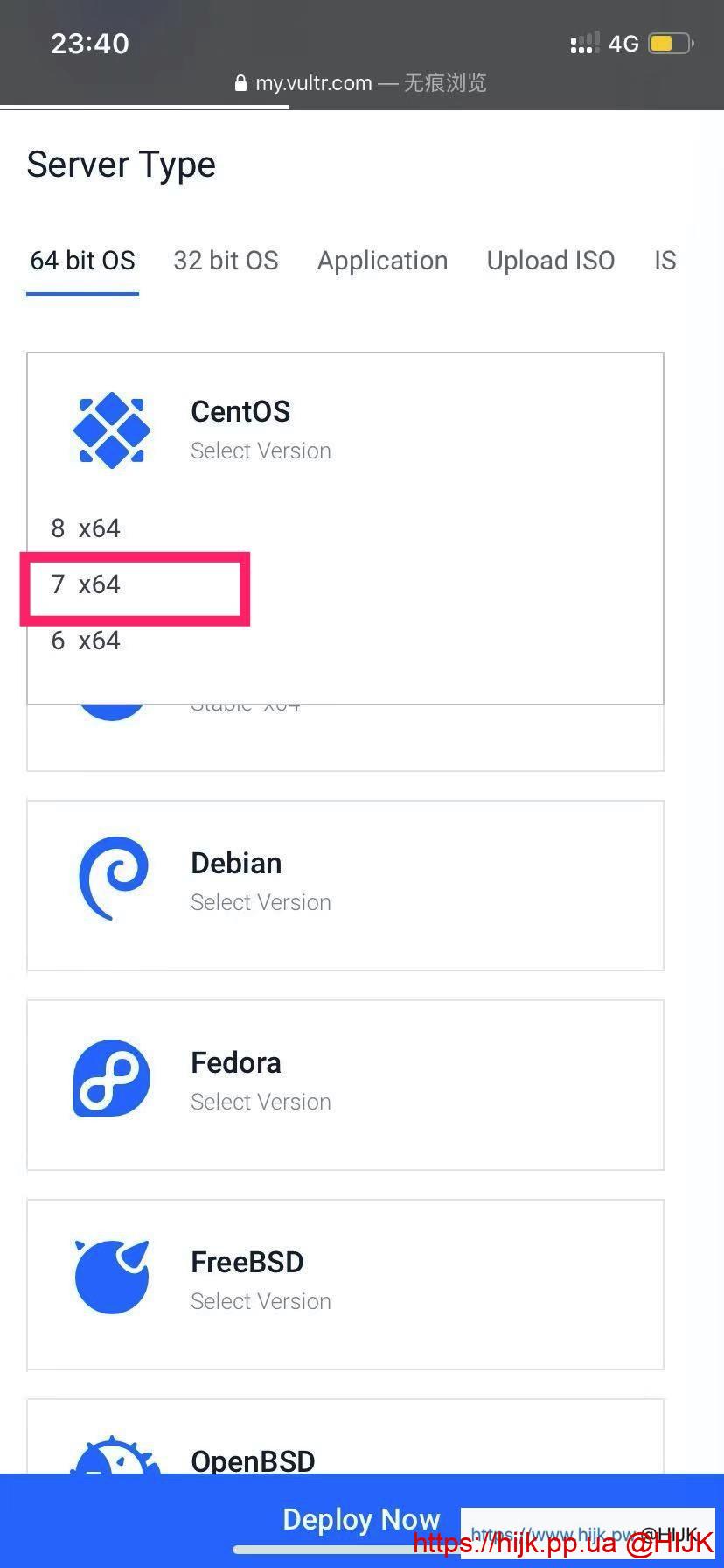 页面继续往下滑,选择服务器操作系统。建议选择“centos 7 x64”(注意是CentOS,不是CoreOS!如果想安装锐速或魔改BBR,不要选带BBR的),因为网上很多教程和脚本都是运行在这个系统上: