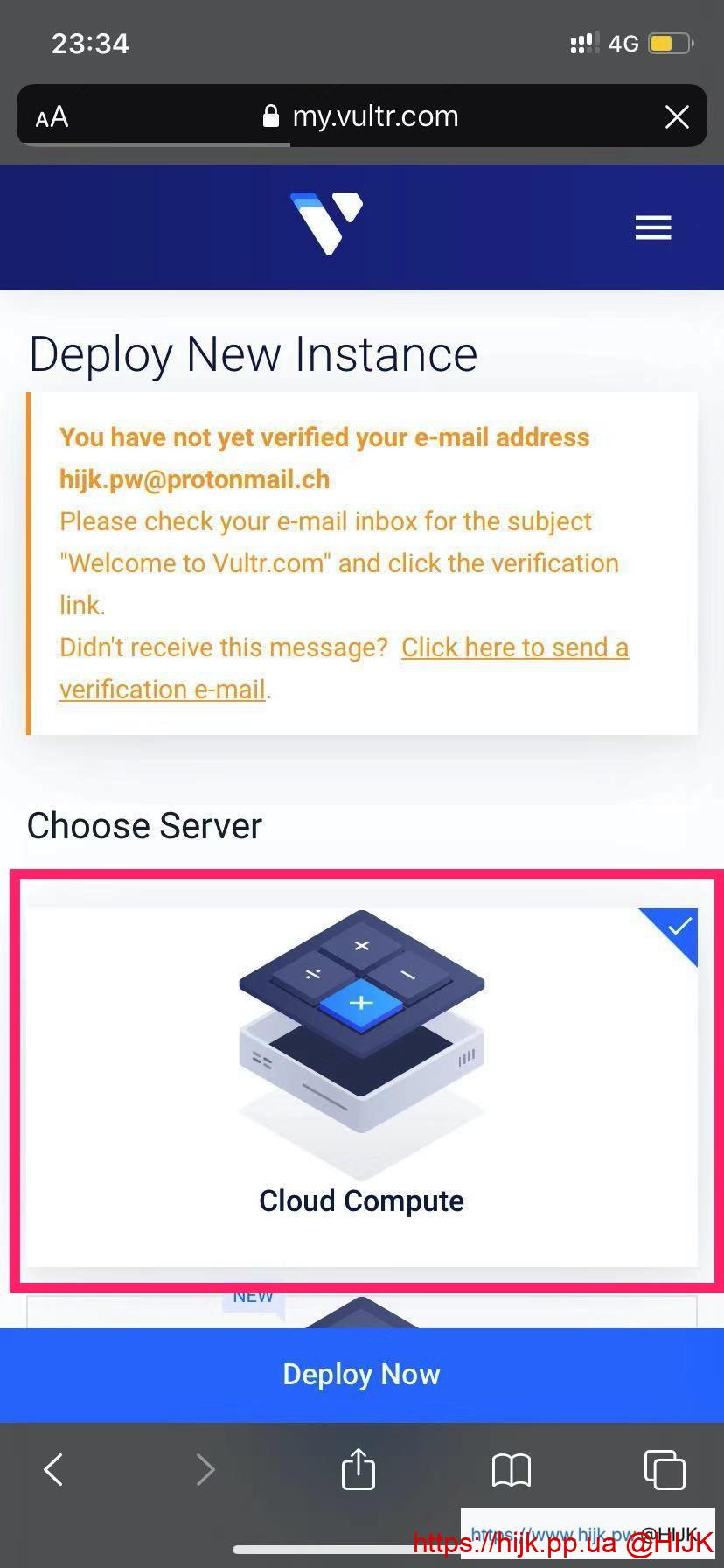 注意:如果你的邮箱账户没有验证,无法成功购买服务器,请先登录邮箱点击vultr邮件中的确认链接激活账户。