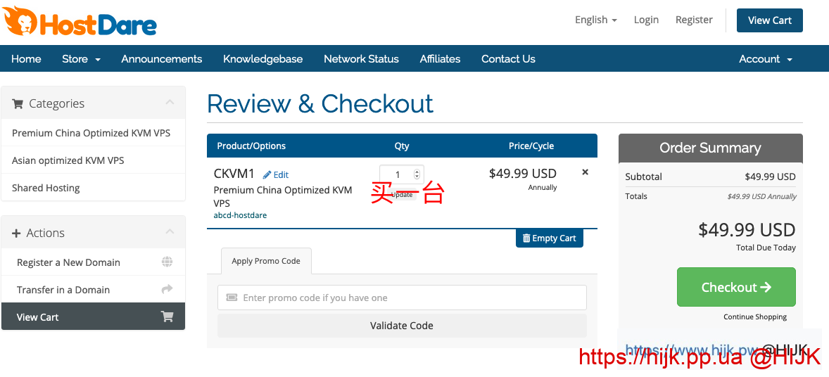 本教程详细介绍购买 HostDare 服务器的操作步骤,内附优惠码。