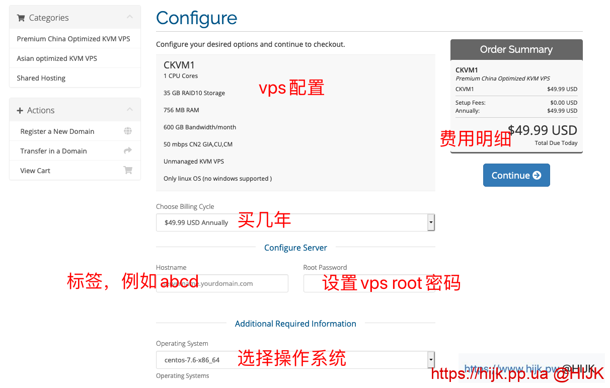 1. 49.99刀每年的CKVM1套餐,包含1个cpu,756M内存,600GB流量,50M带宽三网直连国内;