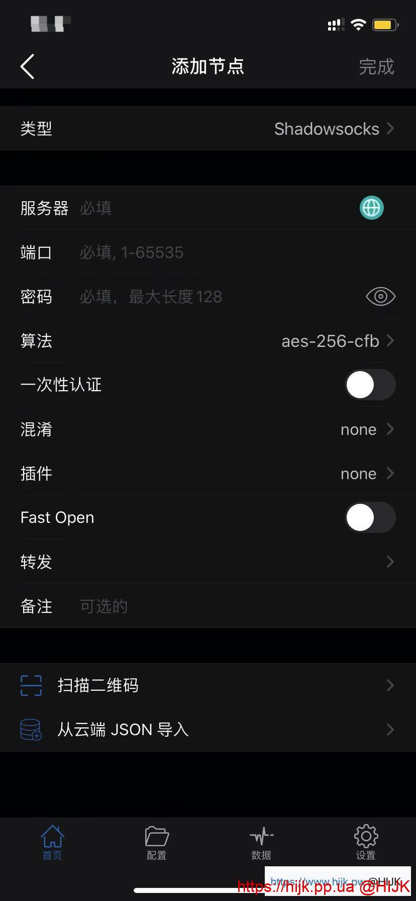 第一、第二、第五组的配置请参考 小火箭(Shadowrocket)配置ss/ssr教程。建议直接扫描Just My Socks后台页面二维码,或复制网页上 ss:// 开头的那串链接,以导入方式配置服务器。